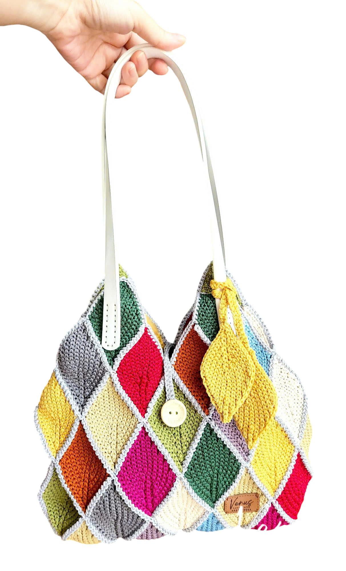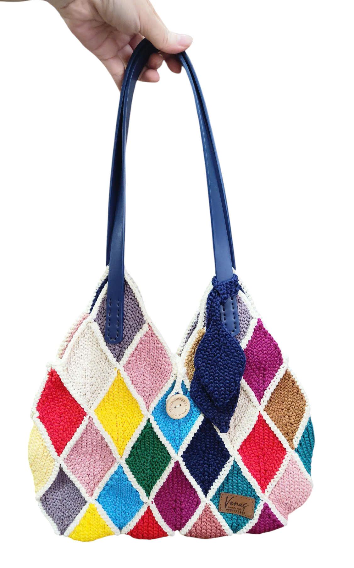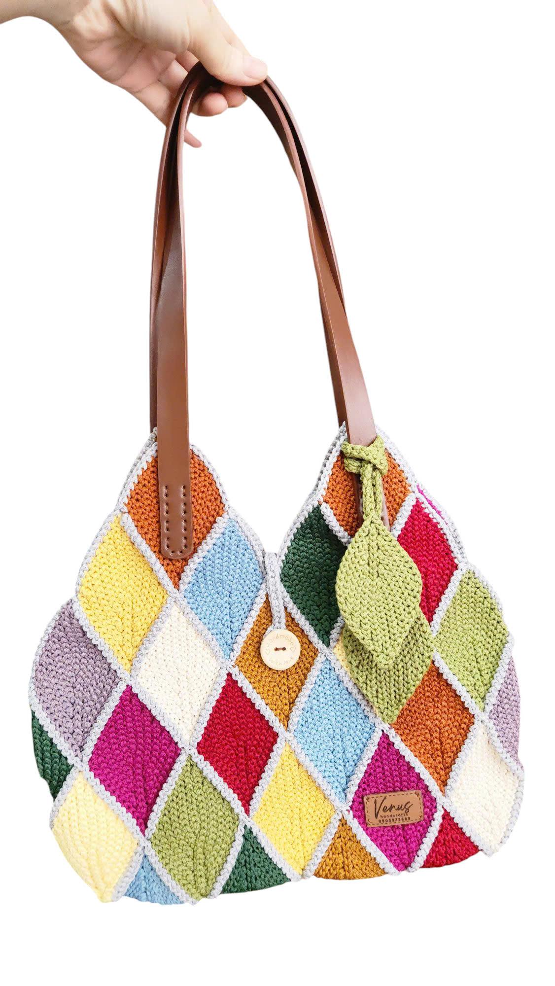 Giỏ đeo vai móc tay ghép lá cầu kỳ, thời trang, nhiều màu sắc nổi bật