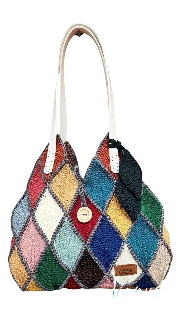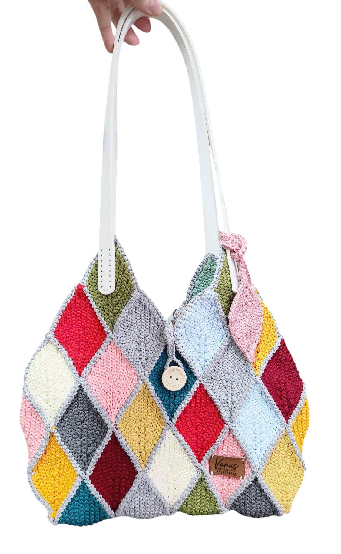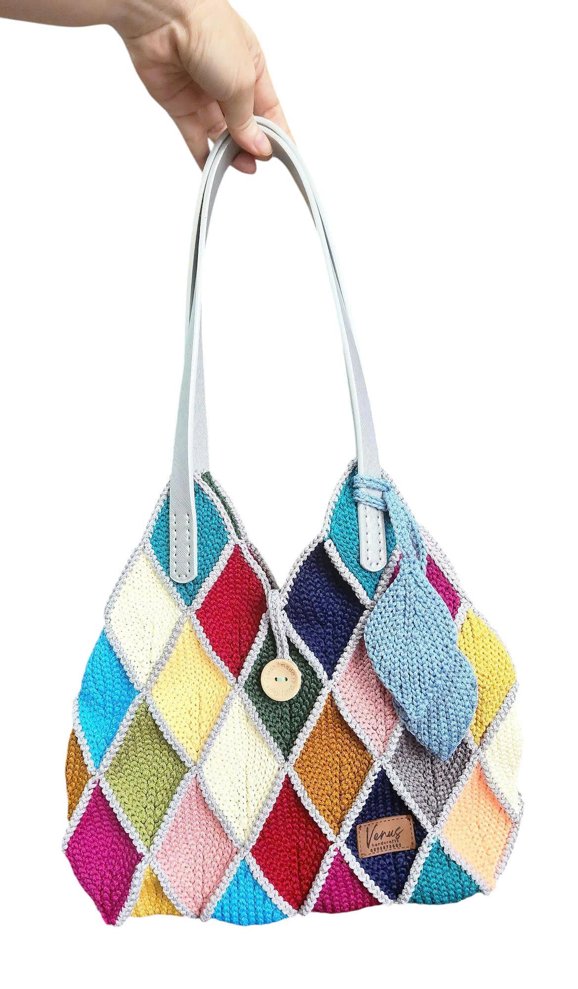 Giỏ đeo vai móc tay ghép lá cầu kỳ, thời trang, nhiều màu sắc nổi bật